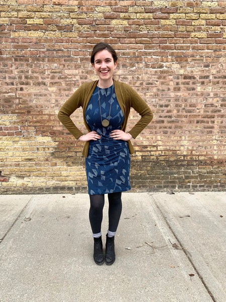 As someone who often falls somewhere in between two sizes at most department stores, my go-to easy fit is often knit - it’s just a bonus that this one happens to be organic and fair trade. For me, the Nina Ruched dress in Twilight is a good combo of figure flattering and subtle, which makes it a good choice for me. I can pair it with a cardigan when working at Mata or just add some jewelry to dress up a bit for date night.